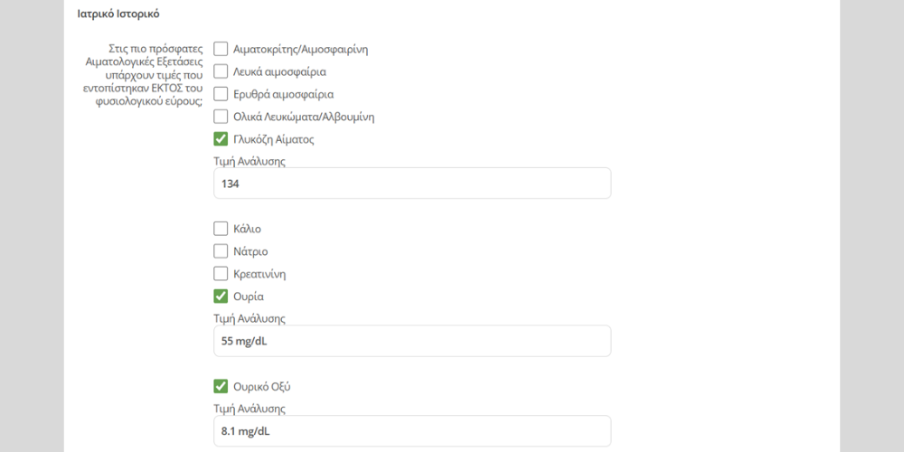 Το έξυπνο στοιχείο: Έχετε τη δυνατότητα να επιλέγετε και να σημειώνετε μόνο τις τιμές που εντοπίστηκαν ΕΚΤΟΣ φυσιολογικού εύρους, κάνοντας την αξιολόγηση της κλινικής κατάστασης ταχύτατη και ξεκάθαρη.