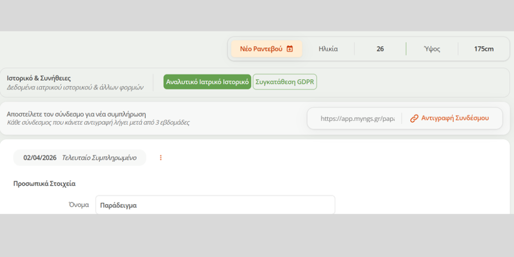 - Προετοιμασία: Έχετε το ιστορικό έτοιμο στην οθόνη σας πριν ο διαιτώμενος περάσει την πόρτα του γραφείου σας.
